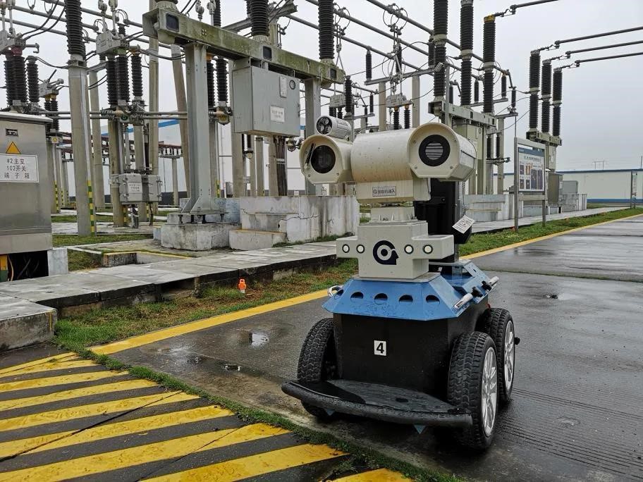 图:220千伏琅东变电站的室外轮式巡检机器人在进行巡视